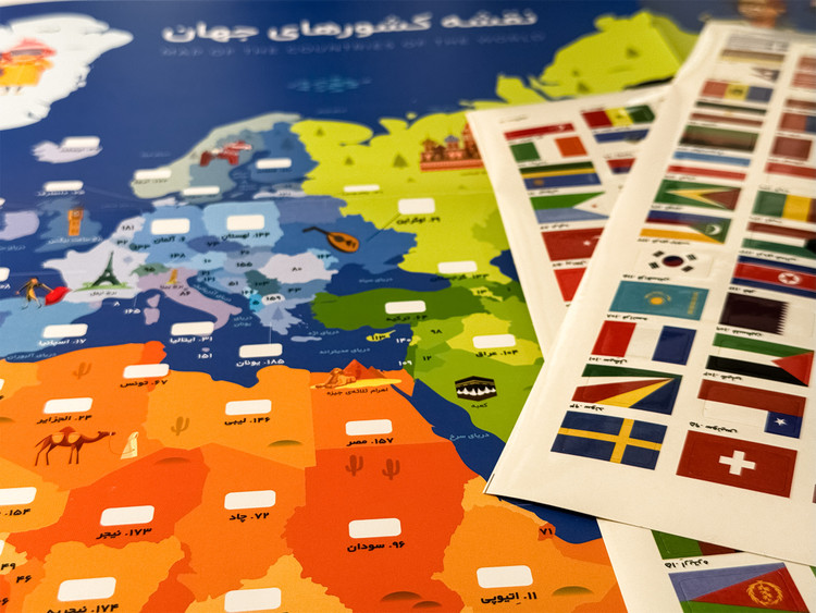 به علاوه، این بازی به تقویت تمرکز، هوش و دانش جغرافیایی کمک میکند و اعتماد به نفس کودکان را از طریق یادگیری اطلاعات جهانی تقویت میکند.نحوه بازی بسیار ساده است: بر روی نقشه و برگههای برچسب، هر کشور با شمارهای مشخص شده است. پرچم هر کشور را از برگههای برچسب بچین و در جای مناسب بر روی نقشه بچسبان. برچسبها را به آرامی روی نقشه بچسبانید؛ تا اگر اشتباهی شد بتوانید به راحتی آن را از صفحه جدا کنید.
