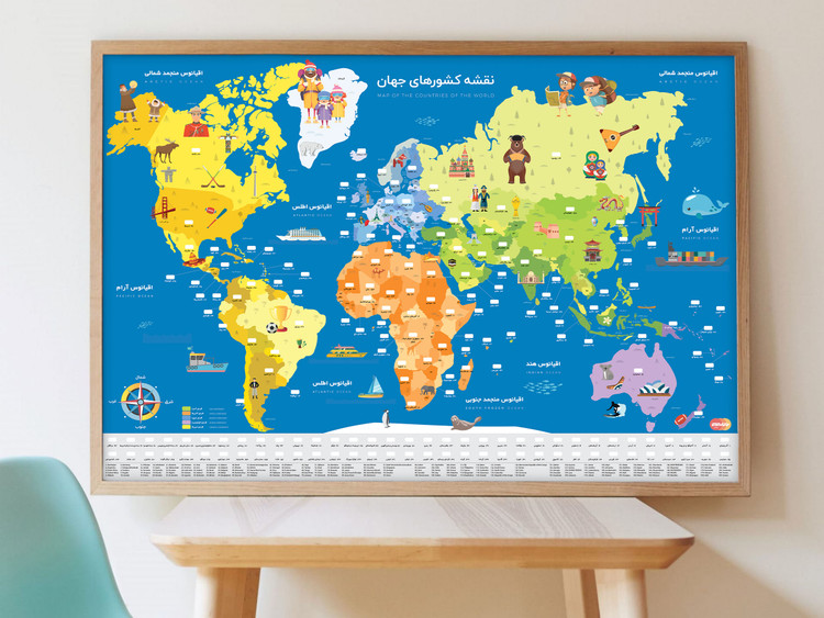 محصول استیپیک نقشه جهان شامل یک نقشهی بزرگ و رنگارنگ به ابعاد تقریبی90*60سانتیمتر است که دنیای وسیع و جذاب جهان را بهطور واضح به نمایش میگذارد. علاوه بر این، 185 برچسب پرچم کشورها در اختیار شما قرار دارد که به راحتی بر روی نقشه چسبانده میشوند.